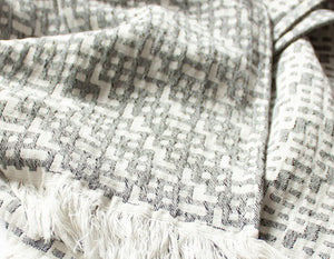 This contemporary neutral design blanket offers comfort and style, with ivory fringing to add texture.